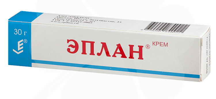 - Эплан. Чинить комплексну дію (бактерицидну, регенеруючу, знеболююче), застосовується при шкірних проблемах різного характеру, починаючи з висипань на шкірі і закінчуючи опіками. Склад препарату унікальний і не має абсолютних аналогів, однак схоже фармакологічна дія мають такі засоби, як Бацитрацин і Алдара.