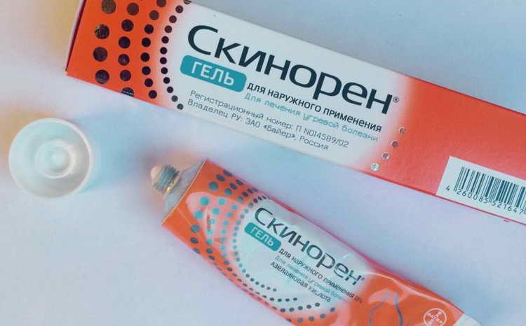- Скінорен – це спеціально розроблений гель, який має протизапальну дію і швидко прибирає почервоніння в місцях зародження прищів. У застосуванні досить простий. Потрібно всього лише намазати невелику кількість гелю на запалену ділянку шкіри.