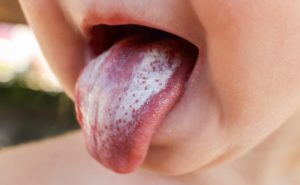 Кандидозний стоматит частіше вражає немовлят. При цьому захворюванні слизова рота і язик покриті білим нальотом, вони легко травмуються. Лікується строго у відповідності з призначеннями лікаря.