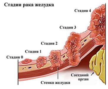 Злоякісна пухлина має чотири стадії розвитку. Що стосується 4 стадії, то вона сама остання, небезпечна, має невтішні прогнози. Рак шлунка останньою мірою проявляється посиленим наростанням загальних, специфічних симптомів захворювання. У трьох попередніх стадіях відсутні специфічні ознаки, іноді вони взагалі не дають про себе знати. Це стає причиною несвоєчасного звернення до лікаря. В результаті настає підсумкова ступінь злоякісного новоутворення. Для шлункової карциноми є неоднозначний прогноз, який залежить від проявляється симптоматики. Згідно зі статистикою, 1 з 20 пацієнтів живе протягом п’яти років після недуги.