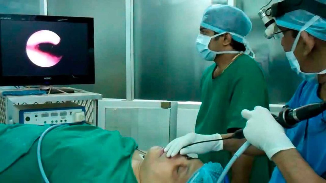 На фото ендоскопічний прокол, з допомогою якого відсмоктується вміст формування і ліквідується кіста