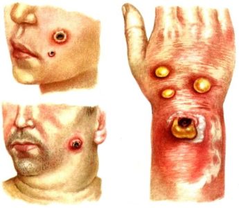- протягом бульозні – з’являються бульбашки на шкірі, лопающиеся на восьму добу від моменту інфікування, некротична поверхню і інтоксикація;