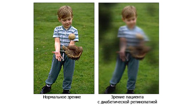 Але, якщо хворий страждає від підвищеного рівня глюкози в крові протягом 20 років і більше, то, швидше за все, у нього розвинеться ретинопатія з можливим ускладненням у вигляді повної сліпоти. Подібний діагноз отримують пацієнти в 80% випадків.