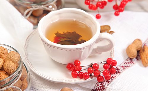 Плоди червоної калини володіють відмінними гіпотензивними властивостями. Крім того, ці ягоди містити всі корисні для гіпертоніків елементи. Після перших заморозків, ягоди слід зібрати, промити і перетерти з цукром. Для заварювання чаю слід використовувати столову ложку суміші на склянку окропу. Засіб п’ють два рази на добу. Бажано, в першій половині дня.