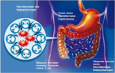 Здорова кишкова мікрофлора містить величезну кількість бактерій, які можна розділити на дві групи: умовно-патогенна флора, облігатна. Чисельність облігатної флори становить 95%, а умовно-патогенної – 5%. Представники умовної флори не представляють ніякої небезпеки, але в разі сприятливих умов відбувається їх активне розмноження, що призводить до зниження кількості облігатної мікрофлори. Подібний дисбаланс кишкової флори носить найменування дисбактеріоз. Патологія проявляється бурчанням, метеоризмом, розладом стільця, блювотою і нудотою, відсутністю апетиту, больовими відчуттями в животі.