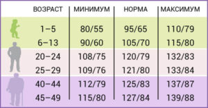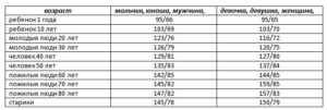 Показники, які вважаються нормою у здорових людей, мають половозрастную динаміку. Вікова динаміка АТ у людей різної статі виглядає наступним чином: