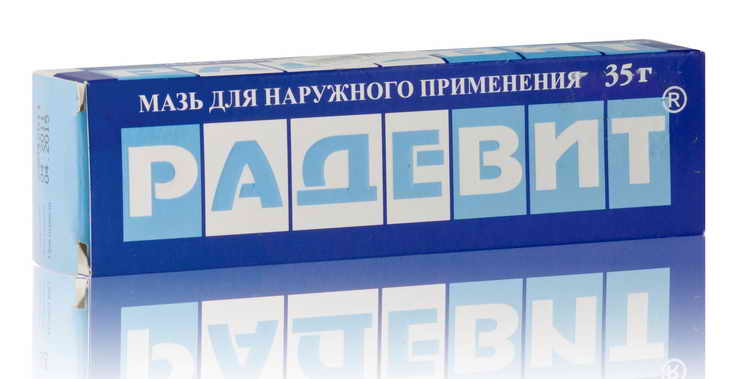 - Радевит. Лікувальна мазь, яка містить велику кількість вітаміну А. Має благотворний вплив на епідерміс, запобігає пересихання і стук. Також правильне використання може допомогти запустити захисні функції і сприяти відновленню шкіри.