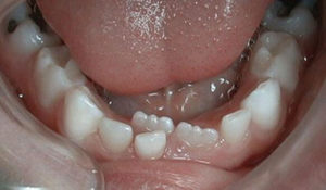 Збільшення міжзубних проміжків. Перший ознака дентации, обумовлений розширенням щелепи. Збереження монолітного зубного ряду до 6 років вважається патологією і вимагає втручання фахівців.