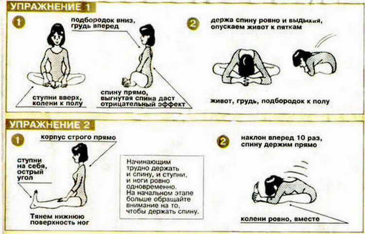 - Сидячи на підлозі, ноги руками обхопіть. Округліть спину і отклонитесь тому, поверніться у вихідне положення. Рухи повинні бути покачивающими туди і назад. 5 повторень.