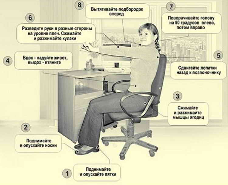 Гімнастика складається з 5 нескладних вправ, які виконуються 10-15 хвилин.