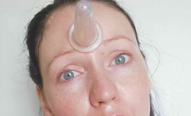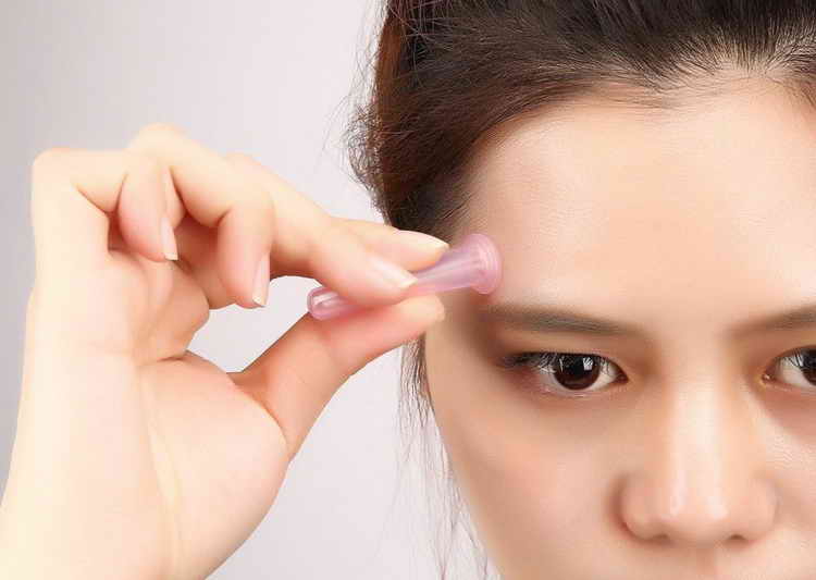 - Починати процедуру слід від центру лоба, ведучи банку до скроні.