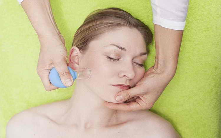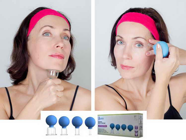 Для вакуумного масажу обличчя потрібні банки діаметром 22 та 33 див. Бажано проводити на розпареній шкірі особи, яку також потрібно змастити зволожуючим засобом.