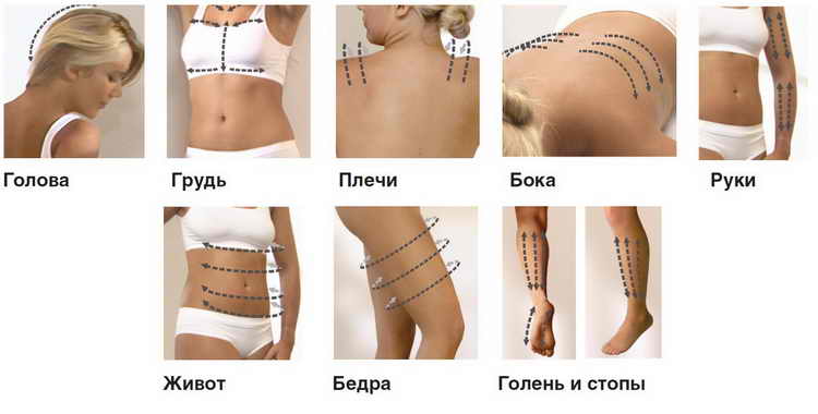 Після слід почати ручний масаж для розігріву, змастивши проблемні ділянки тіла спеціальними маслами для масажу або кремом від целюліту. Руху також повинні повторювати напрямок лімфотоку.