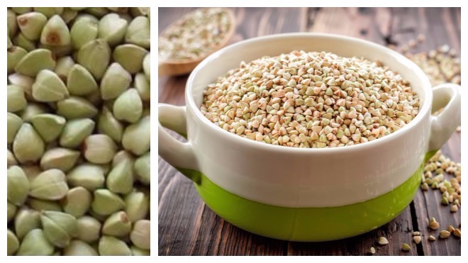 Корисна і зелена сира гречка для діабетиків, вона сприяє зміцненню судин, нормальному обміну речовин і виведення токсинів. Таку гречку перед вживанням пророщують насіння заливають водою, чекають, поки вони набухнуть, і міняють воду. В теплому місці приблизно через 2 доби з’являються паростки, які можна їсти. Пророслу зелену гречку додають у салати, каші або до молочних продуктів.
