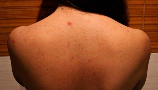На спині можливий розвиток декількох різновидів акне: