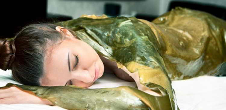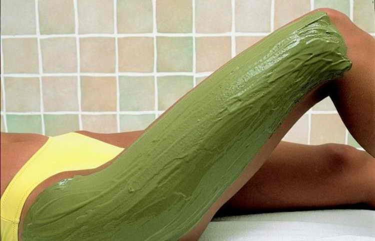Водорості. Дуже популярним є —обгортання ламинарией—. Порошок цієї водорості можна придбати в будь-якій аптеці. Основу заливають теплою водою, настоюють півгодини, після чого наносять на тіло. В доповнення до такої суміші можна використовувати яблучний оцет або масло апельсина.