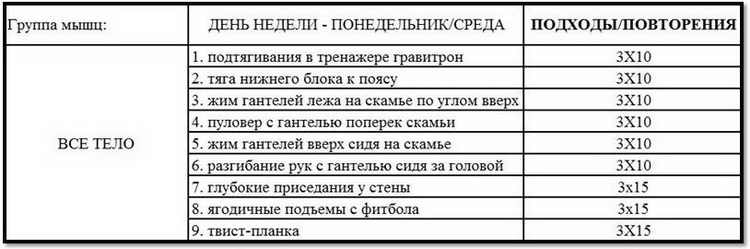 - Тренування 3-4 рази в тиждень (комбінація силових і кардіо).