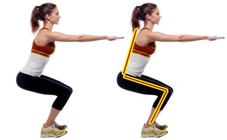 Для домашніх умов ідеально підходить присідання для схуднення нижньої частини тіла. Поставте ноги на ширині плечей, під час видиху згинайте ноги так, як ніби хочете сісти на стілець, спину тримайте рівно, злегка нахилившись вперед, на вдиху повертайтеся у вихідне положення.