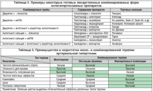 Нерідко терапія є комбінованою. Вона включає в себе кілька ліків. При цьому не тільки знижуються лікарські дози, вдається досягти обмеження їх побічних дій. Позитивна сторона такого дії полягає в одночасному впливі на сукупність механізмів розвитку високого артеріального тиску у конкретного хворого.