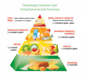 Для людини, що веде малорухливий спосіб життя, енергетична цінність добового раціону повинна складати 2400-2500 ккал — якщо перевищувати цю норму, то зайва вага не піде. Для зниження тиску важливо, щоб кількість жирів при цьому становило не більше 30% від загальної калорійності добового раціону.