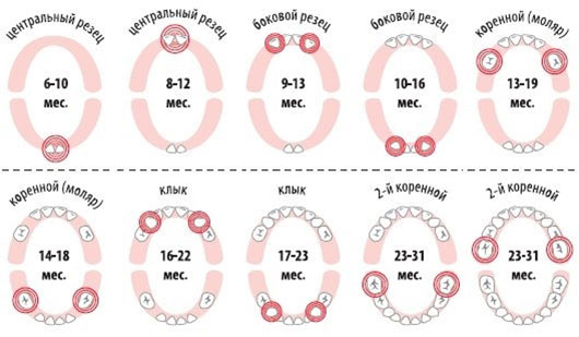 Молочні зуби закладаються у людини ще під час внутрішньоутробного розвитку. З’являються довгоочікувані зубики у всіх по-різному. Це залежить від таких факторів як: кількість кальцію в організмі, генетика, кліматичні умови проживання. Так, у південних дітей можна помітити більш рання поява зубів, ніж у хлопців, що проживають у більш суворому кліматі. Так само дівчинки можуть похвалитися першим зубом вже на 3 місяці, у той час як у хлопчиків вони з’являються пізніше. Поступово, до 3 років виростають всі молочні зуби.