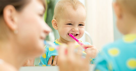 - Дитині у віці від 1 до 2 років чистите зуби дитячої щіткою двічі в день. Робити це потрібно плавними рухами, спрямованими від ясен до жувальних поверхонь.